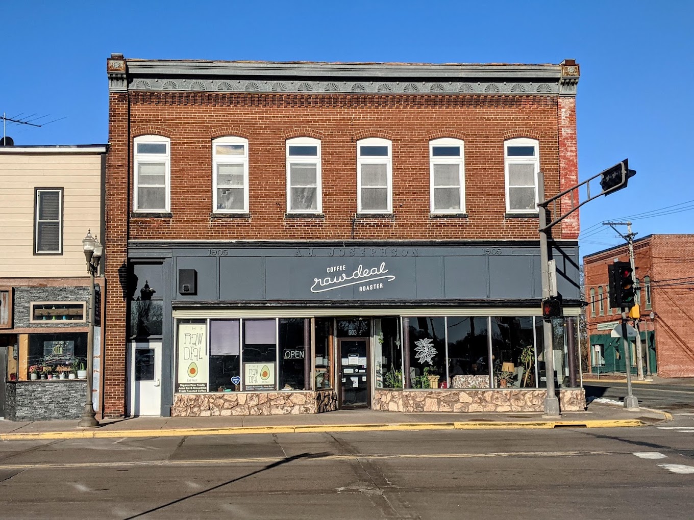 A coffeeshop and micro roaster in the old general store building of downtown Menomonie. Serving freshly roasted fairtrade organic coffee, bakery, vegan & gluten-free options, & fresh smoothies/juices. Raw Deal focuses on authentic ingredients that are not harmful to the earth or other humans.